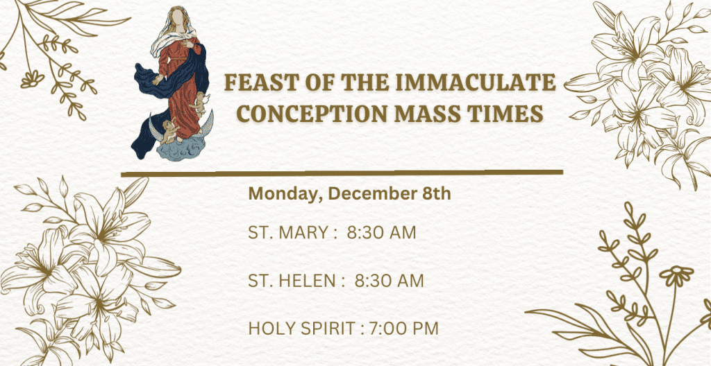 Every Monday7:30am – 8:45am at St. Helen 2nd Tuesday 6:00 pm at Holy Spirit ; 4th Tuesday 6:00 pm at Holy Spirit